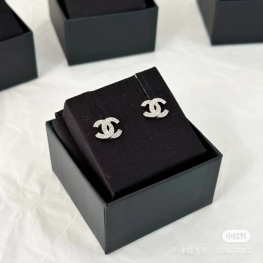 CHANEL Double C metal stud earrings for women