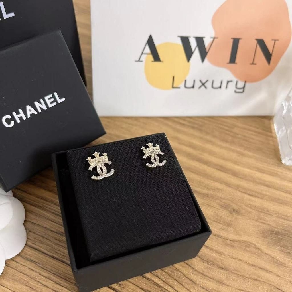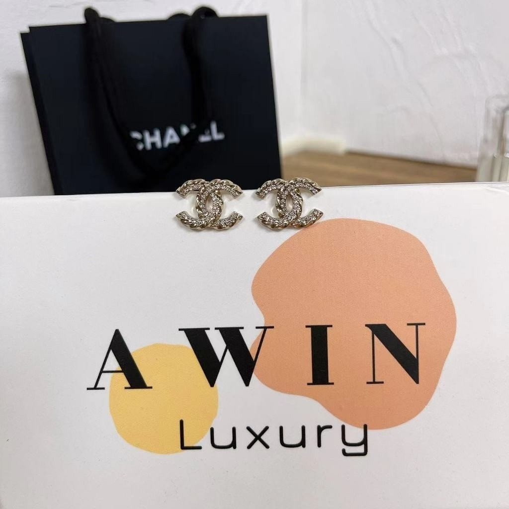 CHANEL Double C metal stud earrings for women