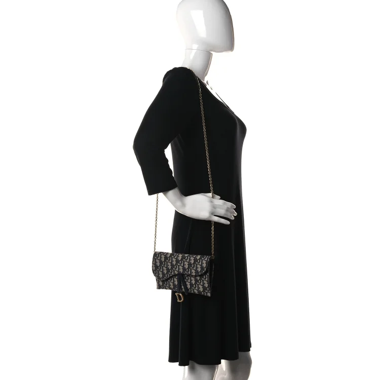 CHRISTIAN D Oblique Saddle Chain Long Wallet Blue