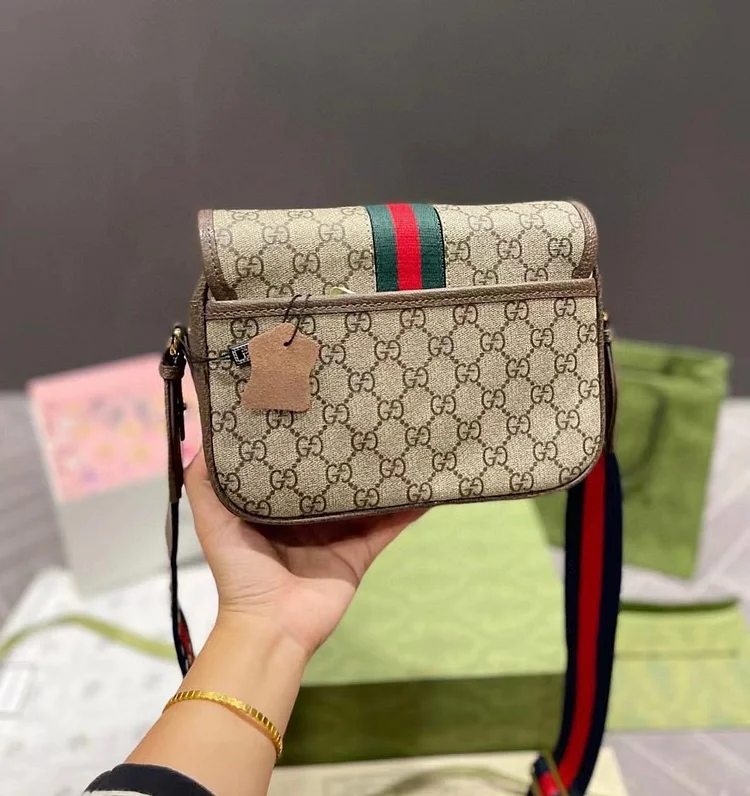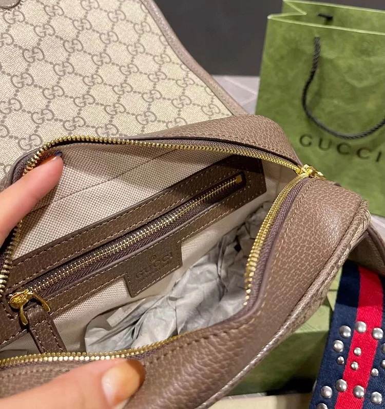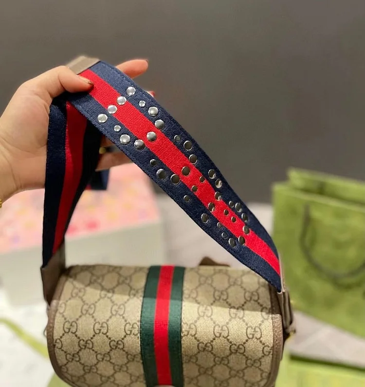 The Ophidia is reinvented in new and unexpected ways. Reminiscent of the punk scene. metal eyelets and studs define the historical silhouette to create a one-of-a-kind take on the archival style. Creating a playful contrast. the mini-sized shoulder bag is crafted from the House’s signature GG Supreme canvas in the traditional color combination of beige and ebony.