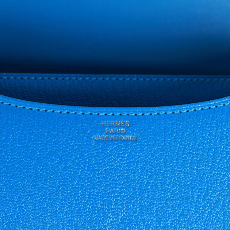 H Constance 18 Bleu Hydra Chevre Gold Hardware