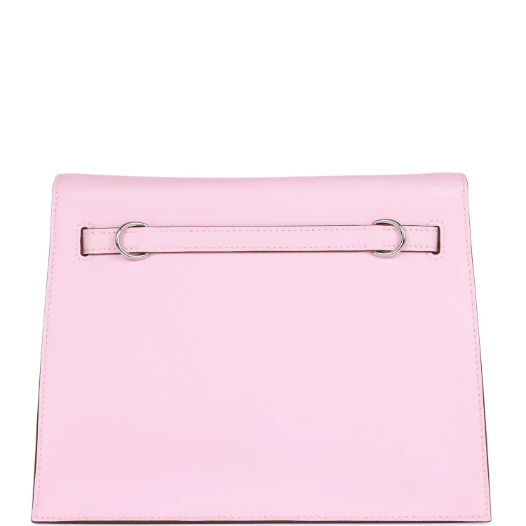 This Kelly Danse II is inRose Sakura swift leather withpalladium hardware and hastonal stitching. two straps with front flap closure and an adjustable flatshoulder strap for multistyle wear.