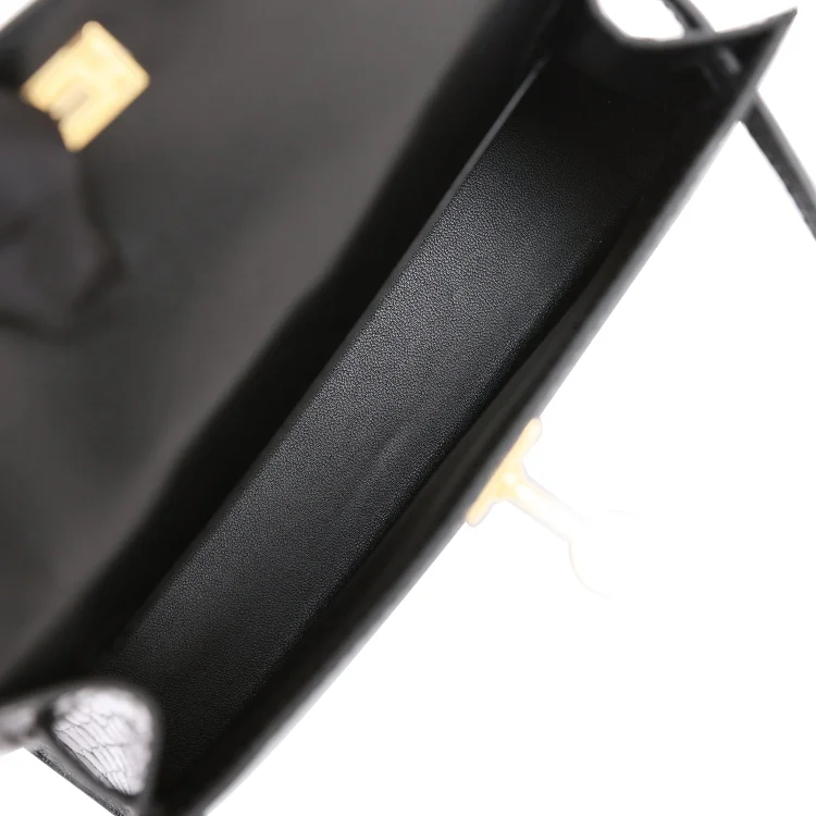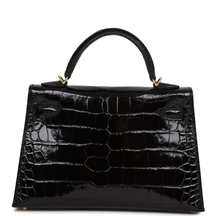 Be the first to review “H Kelly Sellier 20 Black Shiny Alligator Gold Hardware”