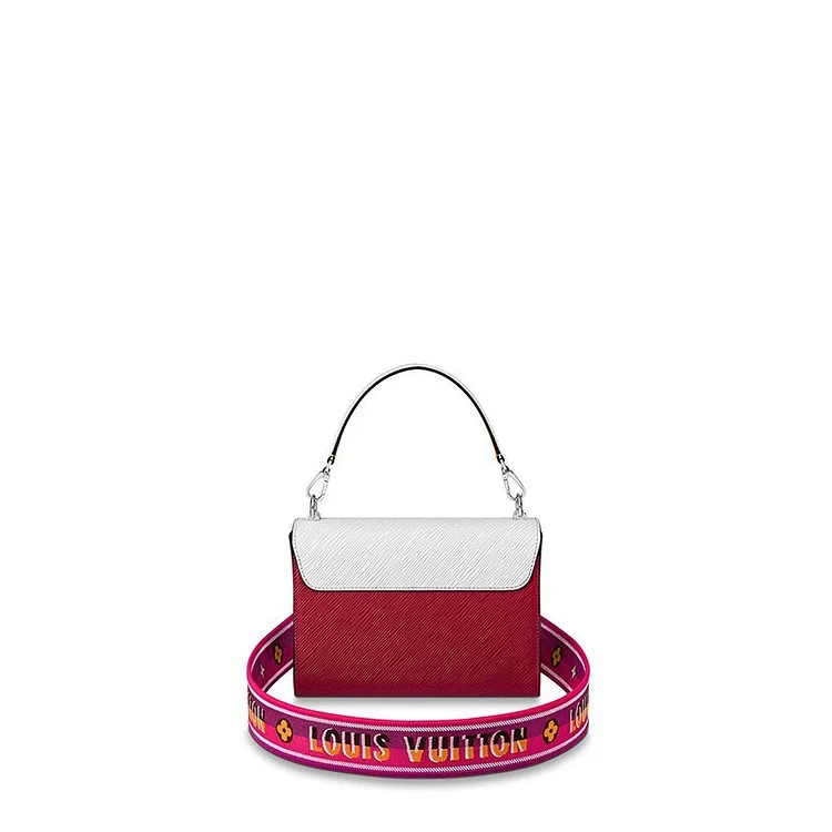 The Twist Strap MM is a laid-back iteration of the New Classic bag. It features both a Epi grained leather top handle and a wide. sporty-chic embroidered satin strap. Designed for a short cross-body carry. the strap is embroidered with ‘L’ on one side. and Monogram Flowers on the other. A standout style for casual or athleisure looks.