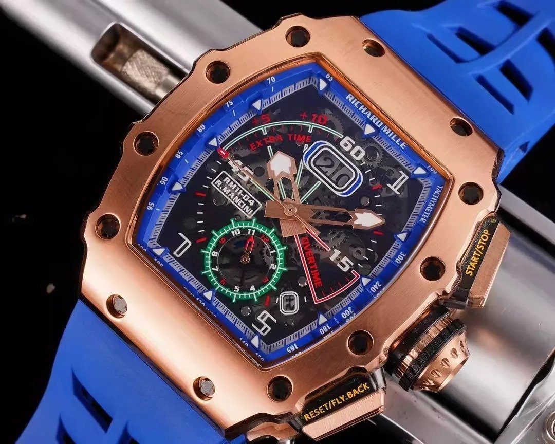 RM 11-03 Skeleton Blue Dial Rose Gold Bezel Blue Rubber Strap ZY 7750