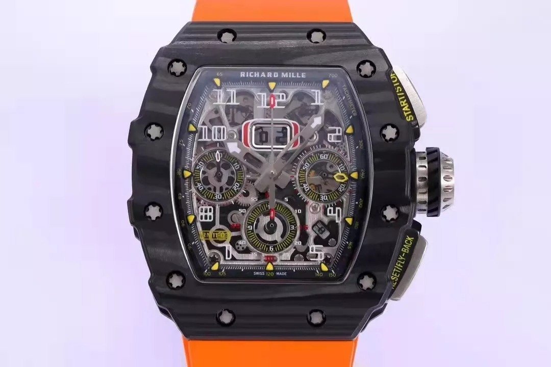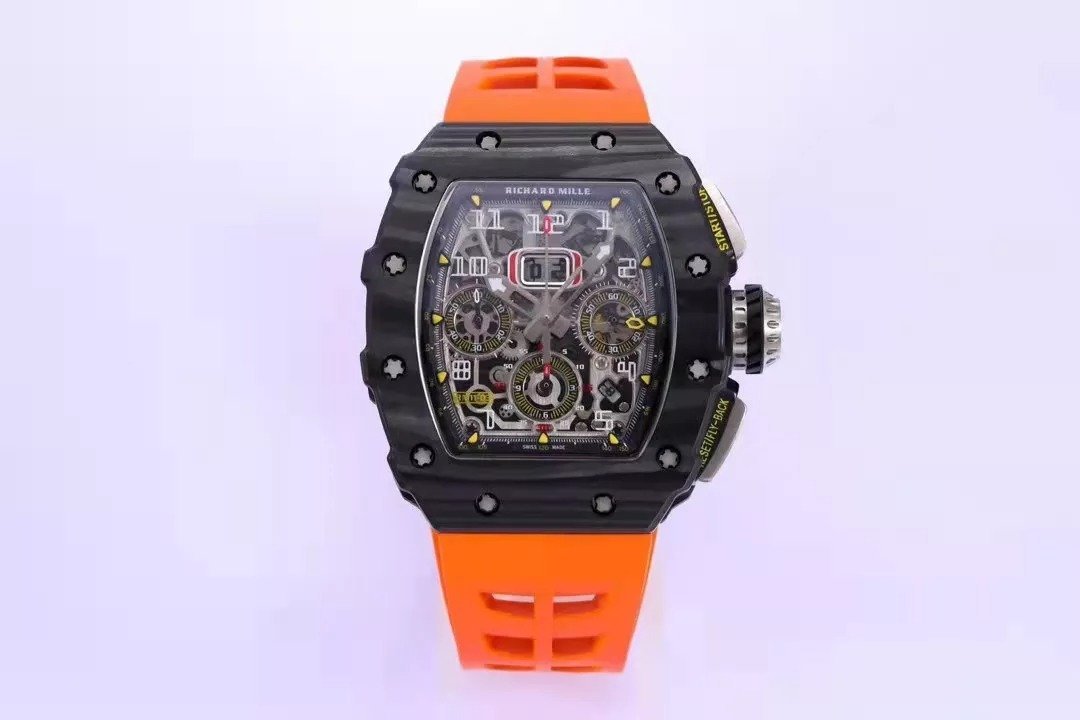 RM 11-03 Skeleton Dial Black Bezel Orange Rubber Strap KV 7750
