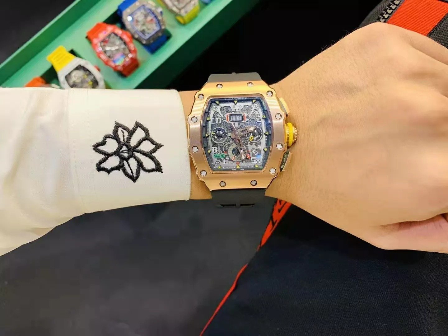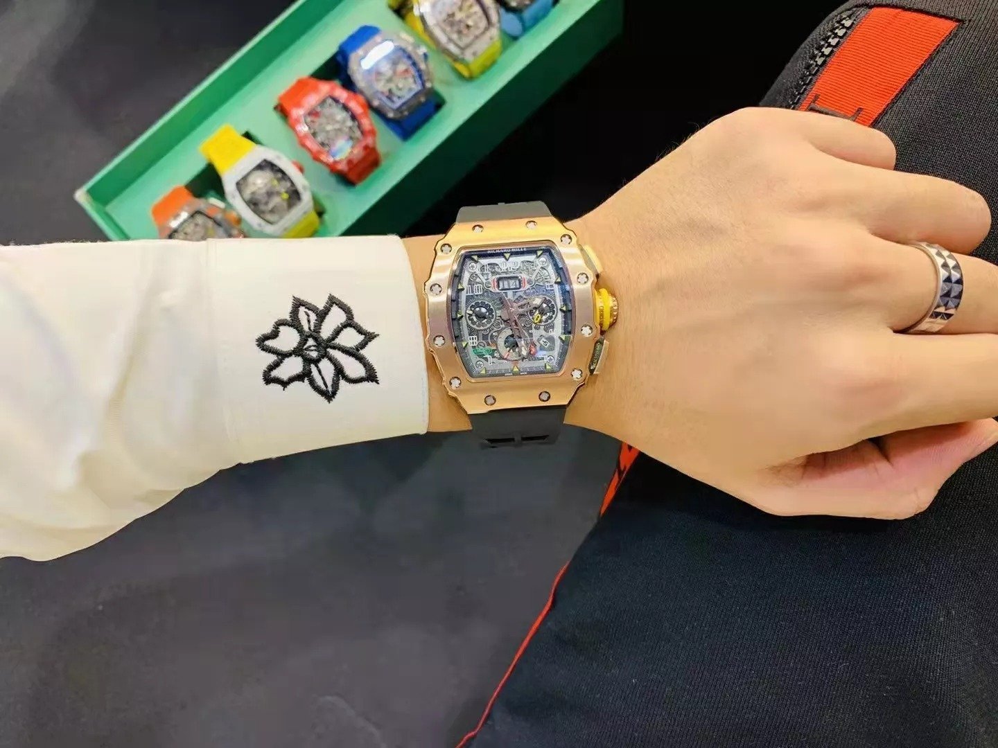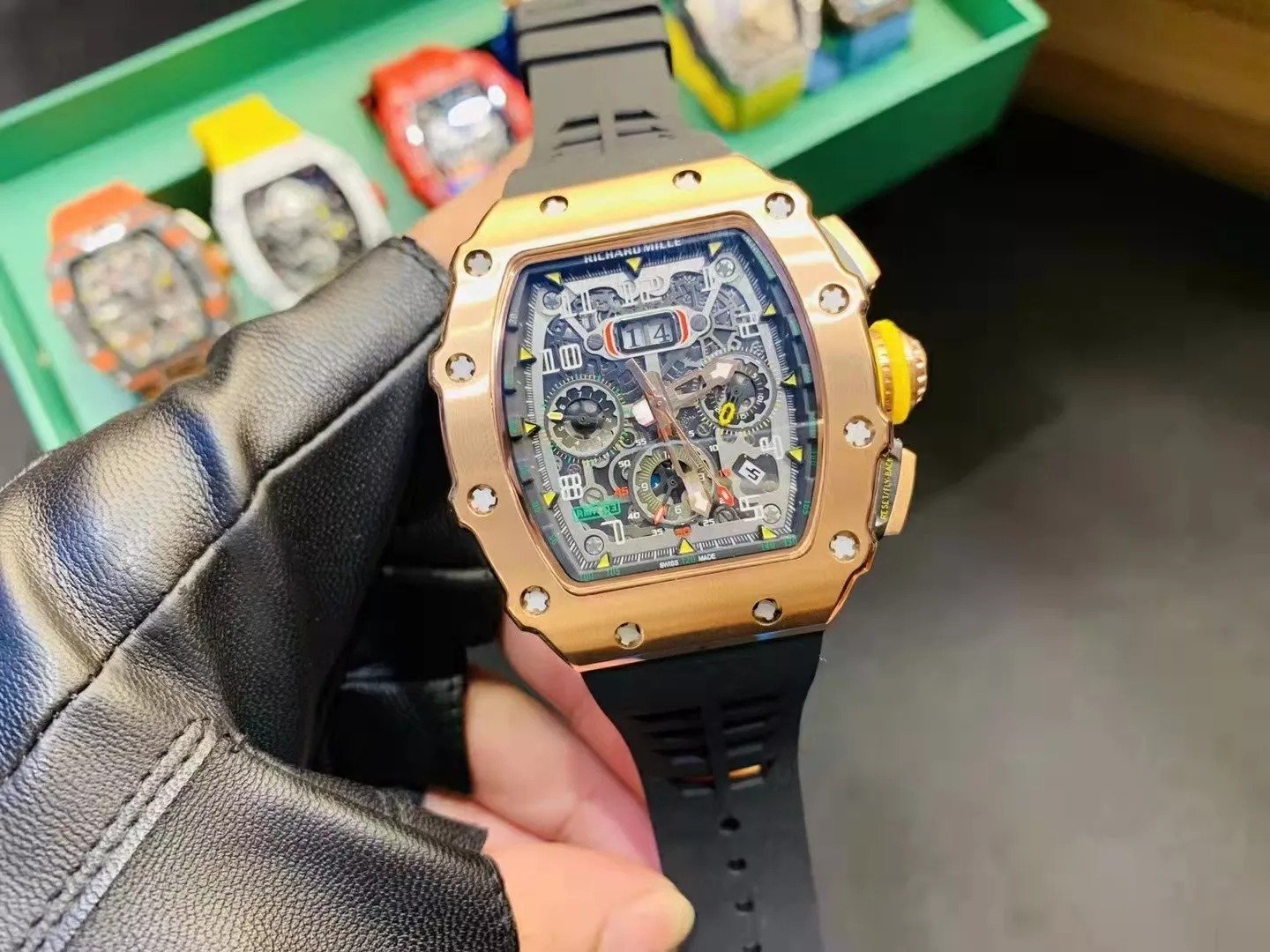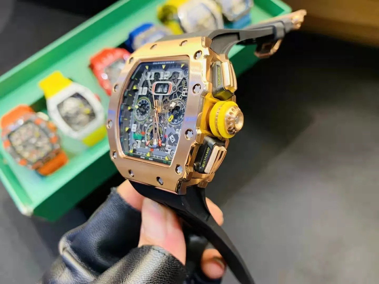 RM 11-03 Skeleton Dial Rose Gold Bezel Black Rubber Strap ZY 7750
