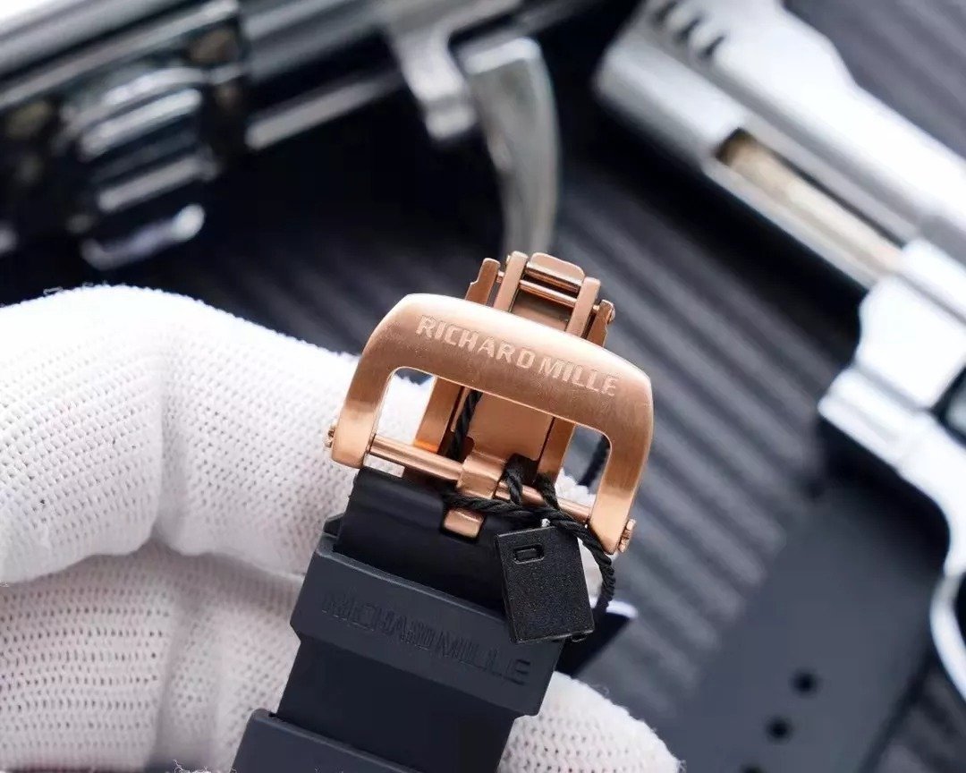 RM 35-02 Black Bezel Rose Gold Hands Black Rubber Strap RUML3
