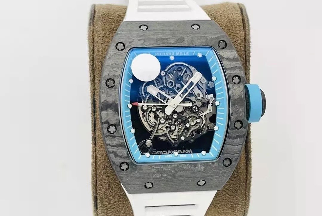 RM055 Skeleton Blue Dial Black Bezel White Rubber Strap ZF RMUL2