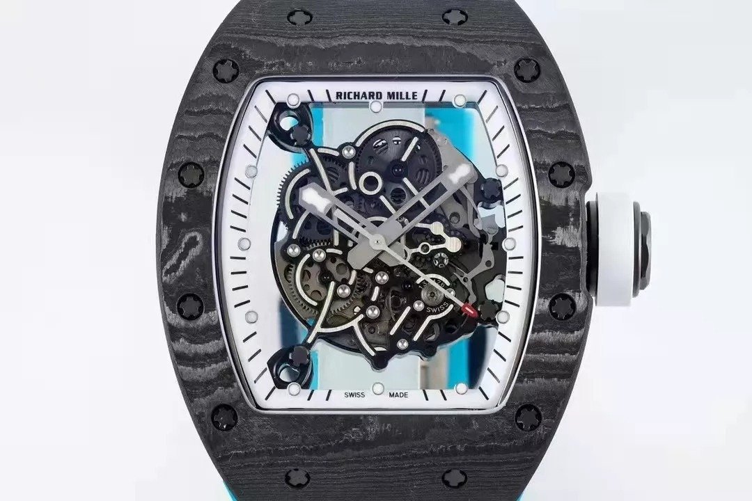 RM055 Skeleton White Dial Black Bezel Blue Rubber Strap ZF RMUL2